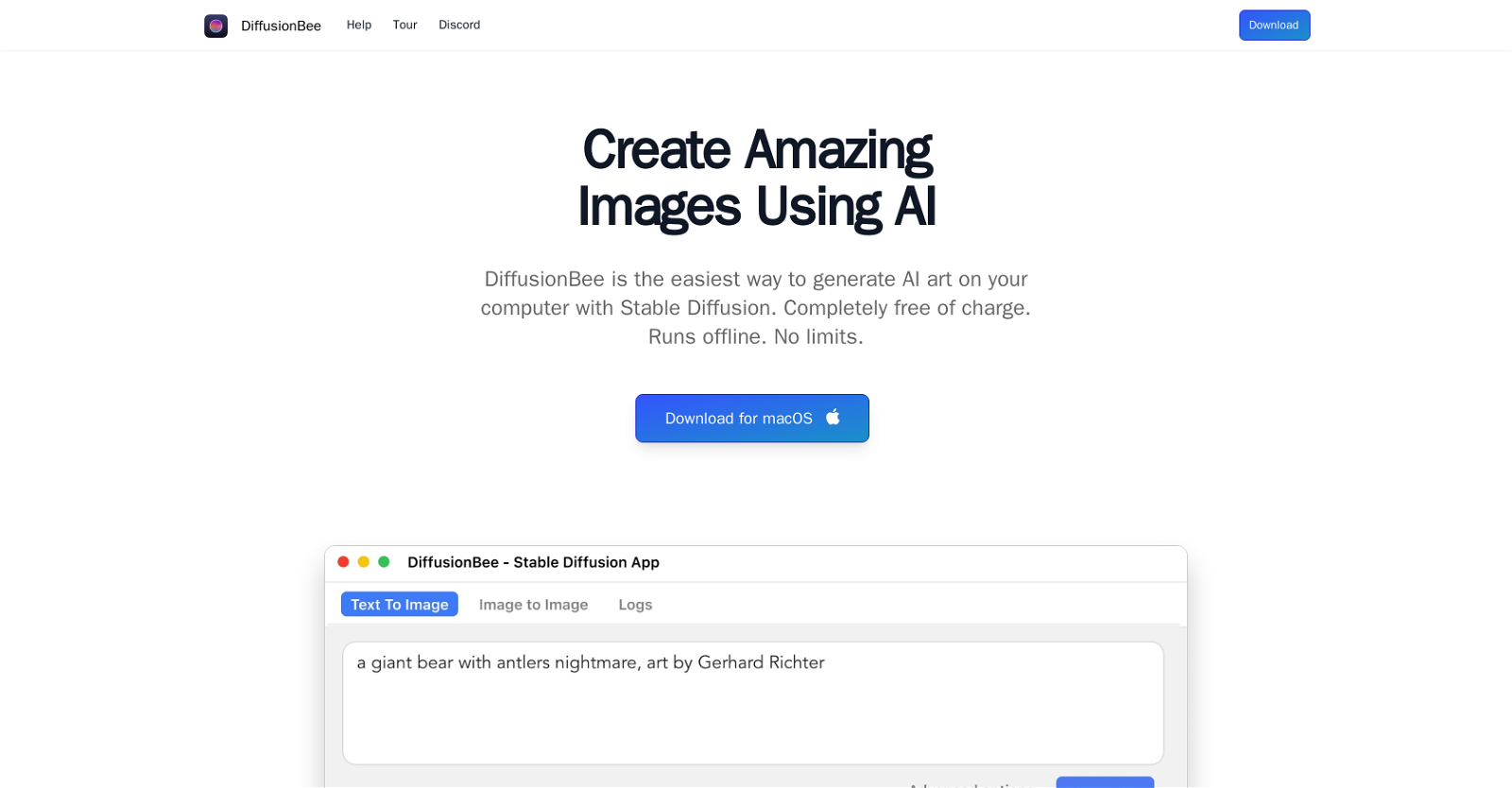 DiffusionBee는 Mac 컴퓨터용으로 개발된 무료 AI 예술 생성 도구로, 텍스트 프롬프트만으로 AI 예술을 생성할 수 있습니다.- 등록일2023년 7월 22일