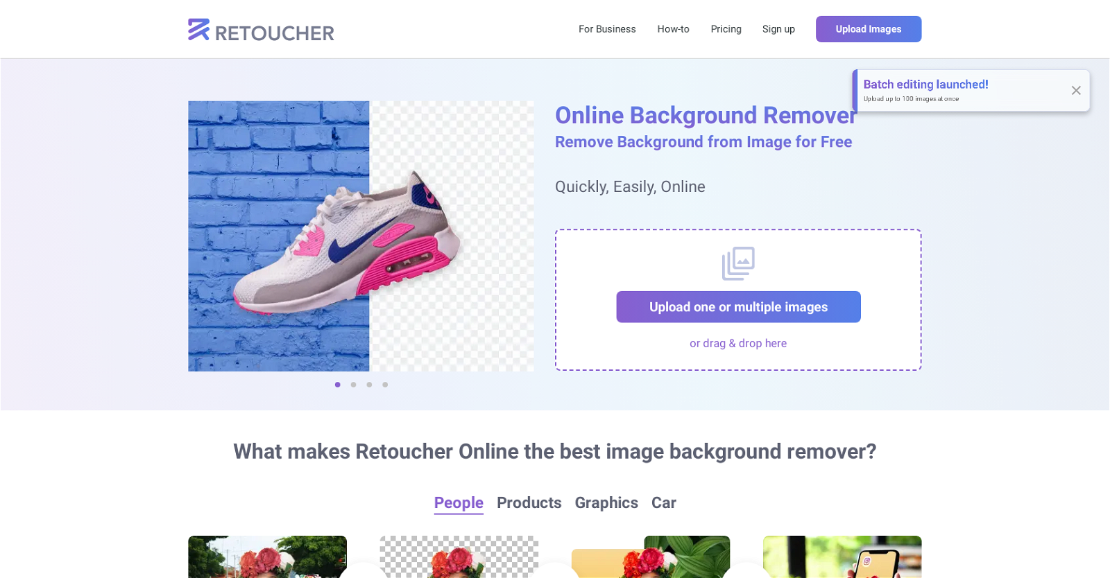 Retoucher는 3-in-1 이미지 배경 제거 도구로서 이미지의 배경을 자동으로 제거하고 흰 배경, 투명 배경 또는 사용자 정의 배경 중에서 선택할 수 있습니다.- 등록일2023년 7월 22일